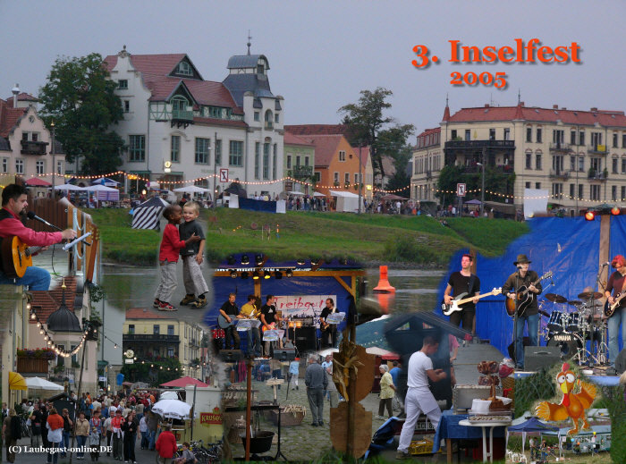12.08.2005 u.a. Händler auf dem Laubegaster Ufer, die Band "Treibgut" auf