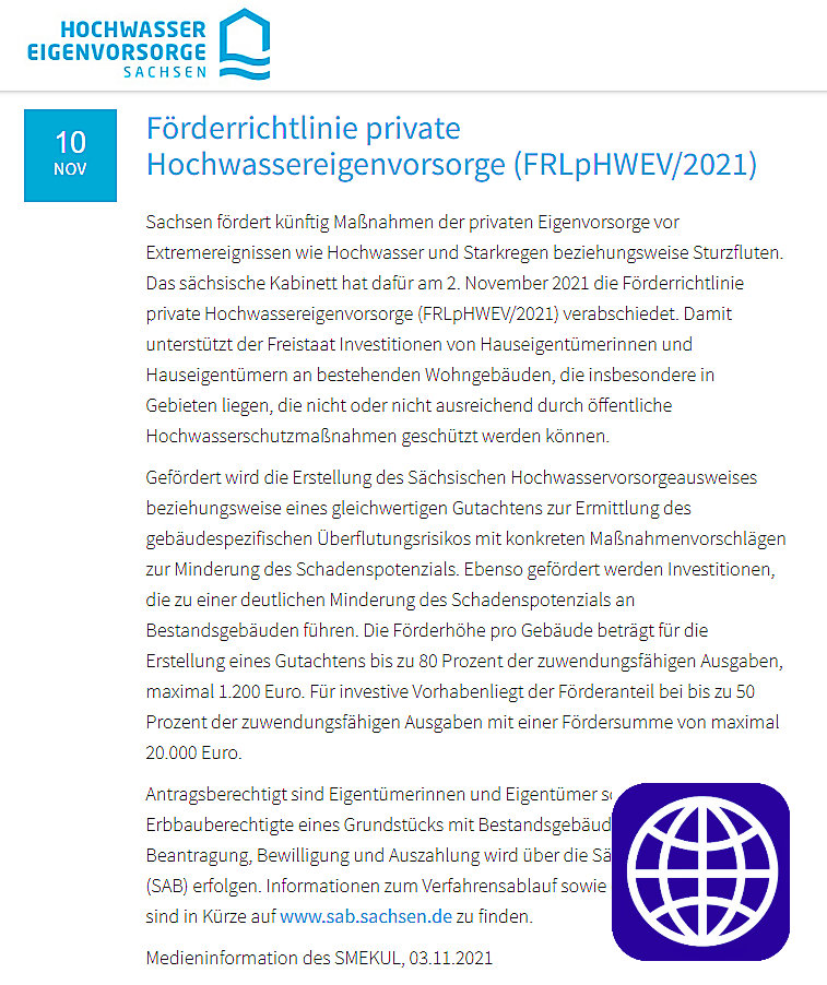 (Förderrichtlinie private Hochwassereigenvorsorge - FRLpHWEV/2021) vom 02.11.2021