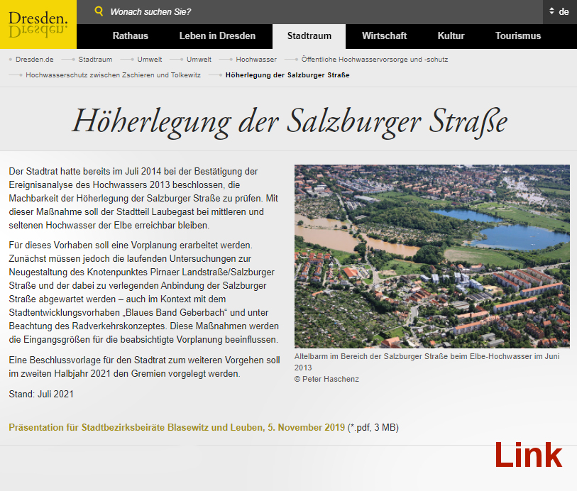 der Flut 2002 zeigen, dass die Salzburger Straße bei dem Maximalpegel