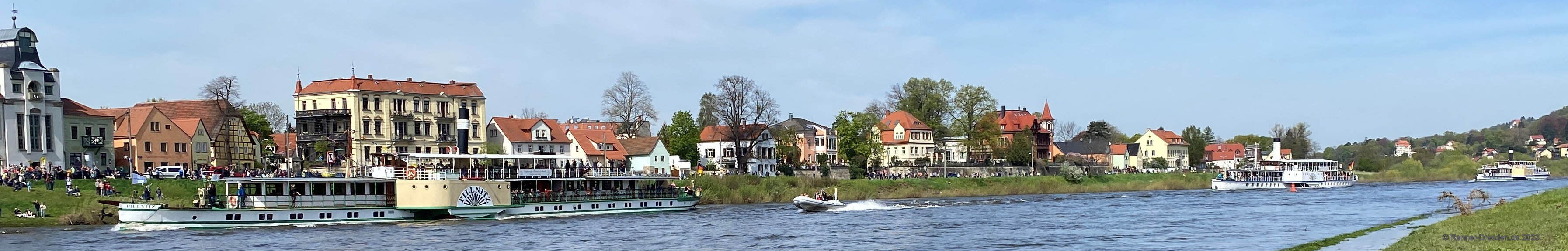 Dresden um 7,33m, Panorama verlinkt zu den Seiten des Hochwassers 2006