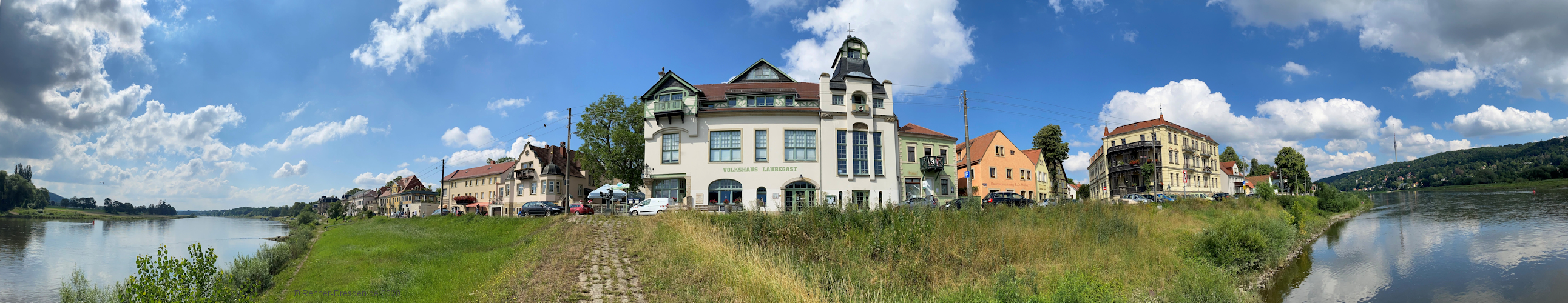 18.07.2020 Laubegaster Ufer vom Schutzwall der ehemaligen Schiffsmühle gesehen