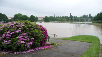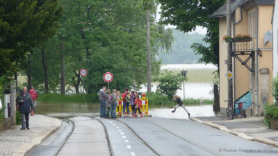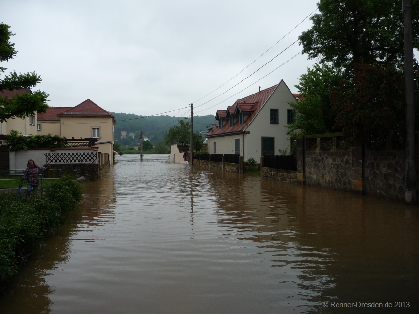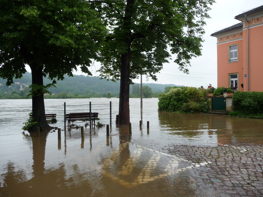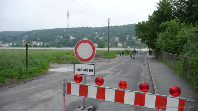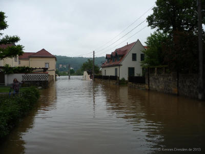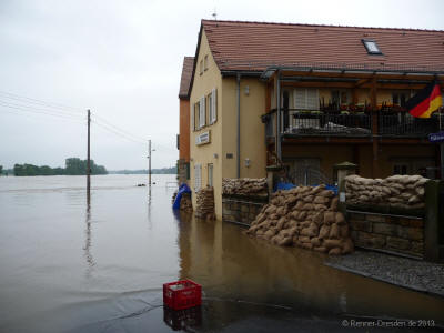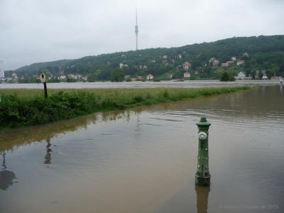 Situation 4.6.2013 gg. 13:00Uhr Pegel 7,50m; Die Elbe kommt.
